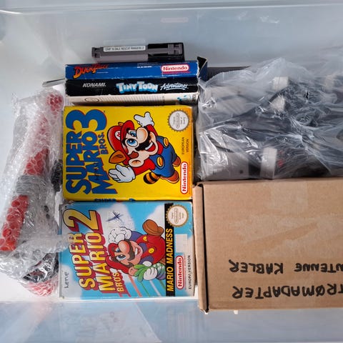 Nintendo NES spillkassetter inkludert Super Mario Bros og Trojan. Spillene er til Nintendo Entertainment System (NES) og leveres i originalemballasje. Passer for samlere og spillentusiaster.