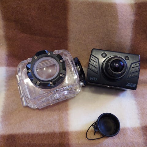 Perfekt actionkamera til ferie, ski, sykkel og vann! 720p video, 5 MP bilder og vanntett hus ned til 30 meter. Leveres i original eske med flere fester. Lite brukt og klar til bruk.
