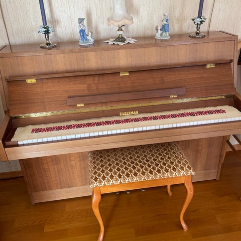 Rönisch upright piano i treverk. Pianoet har et tradisjonelt design med hvite og svarte tangenter. Passer for bruk i hjem eller øvingsrom.