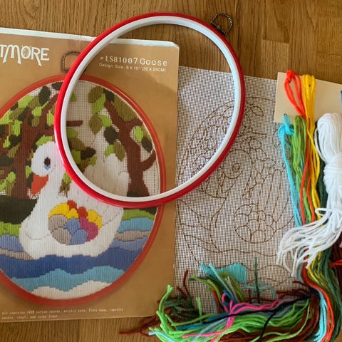 Stramei for brodering i hele eller halve korssting uten garn - men fremkommer farger som skal brukes på selve strameien. Strameien er 40x48 cm, mens motivet er 30x40 cm. kr. 120,- + frakt
