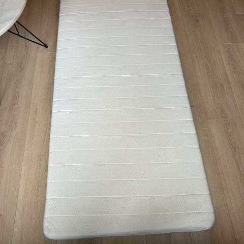 Jysk madrass i grått stoff. Kan rulles sammen for enkel oppbevaring og transport. 200x90 cm