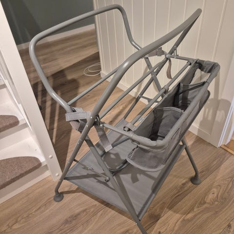 Stativ selges til twistshake badekar. Det har fleksible oppbevaringsrom, som holder skyllekannen, badelekene og vaskeklutene dine lett tilgjengelig, og en dreneringsslange som gjør det enkelt å tømme badebaljen.