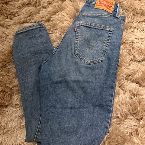Levi's High Waisted Mom Jeans for kvinner i størrelse XS med midjevidde W24. Jeansene er laget av blå denim og har en høy midje. De har klassiske detaljer som glidelås og lommer.