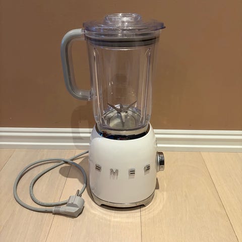 Smeg blender i svart farge. Passer til blanding av ingredienser for matlaging og drikke. Utstyrt med glasskanne og flere knivblader for effektiv miksing.