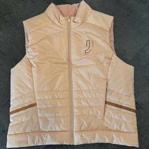 Johaug vest størrelse M for kvinner, svart farge. Vesten er lett og polstret, egnet for ulike aktiviteter innen sport og fritid.