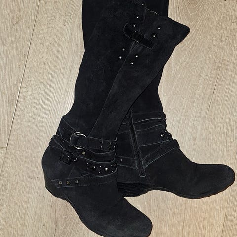 CMP Støvler i størrelse 36, svart farge. Støvlene har høye hæler og glidelås på siden. Materialet ser ut til å være semsket skinn eller lignende stoff.