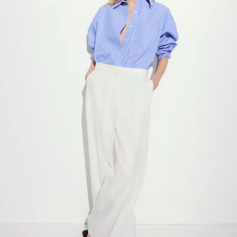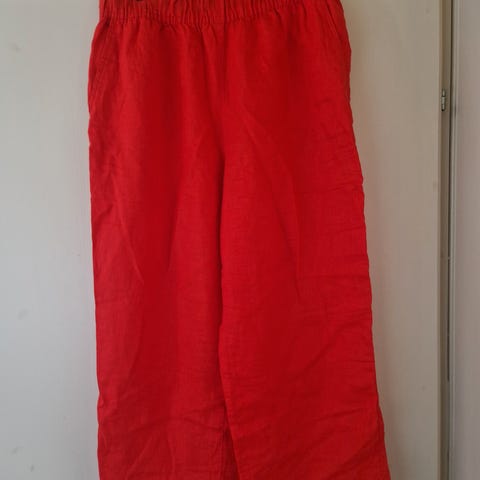 Selger tilnærmet ubrukt bukse i linmiks. Størrelse S. Stripene khaki og hvit. Selges da den ble litt for stor for meg. Strikk i livet.