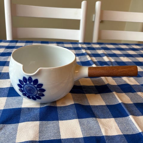 Rörstrand, Grøn Anna, Design Carl-Harry Stålhane, sauseskål / sausenebb. H: 8,5 cm D: 11,5 cm. Merket VDN ugnssakert. I fin stand uten skår /skader med frisk grønn farge i motivet og blank glasur.