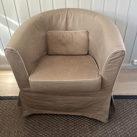 To lenestoler fra IKEA. Beige farge. Den ene stolen mangler trekk til sittepute. 100 kr samlet.