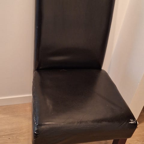 6 stk skinnstoler gis bort ved henting. Finnes noen slitasjeskader på stolene, men er fult brukbar.