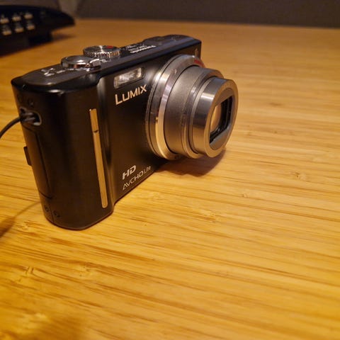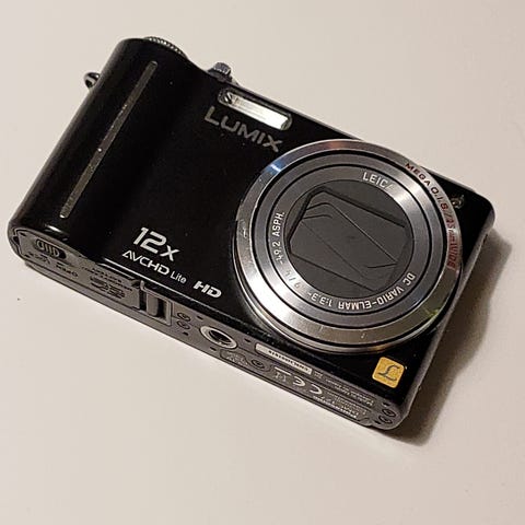 Panasonic Lumix DMC-FX07 digitalkamera i svart farge. Kompakt design med innebygd objektiv og skjerm på baksiden. Leveres med original emballasje og etui.