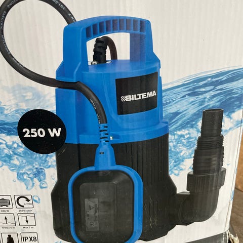 Denne kompakte elektriske vannpumpen er egnet for å pumpe vann fra en brønn, for eksempel. Et praktisk verktøy for å pumpe vann ut av innendørs lokaler. Enkel å sette opp, med en kapasitet på 250 l/min.
