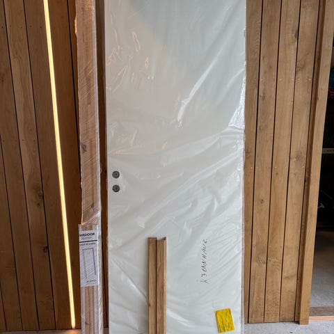 Selger et helt nytt dørblad type: 70x210. (Merk: dette betyr at bredden på selve dørbladet er 63 cm.). Fargekode: NCS S 0502-Y (Hvit)