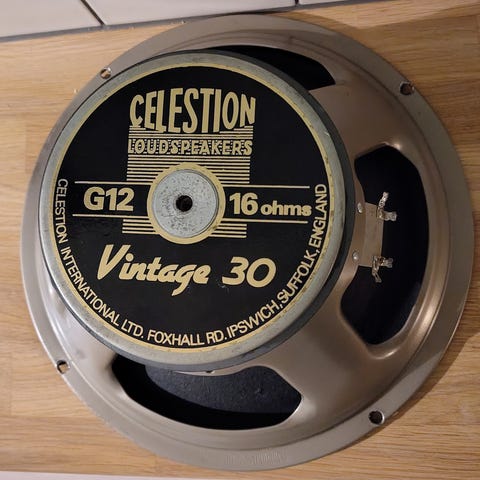 Jeg har lest at denne (4 ohm varianten) opprinnelig satt i Marshall 5010-comboen, som ble produsert fra 1982 til 1989. Elementet er selvfølgelig produsert i England. Dette forsvant fra markedet lenge før produksjonen ble flyttet til Kina.