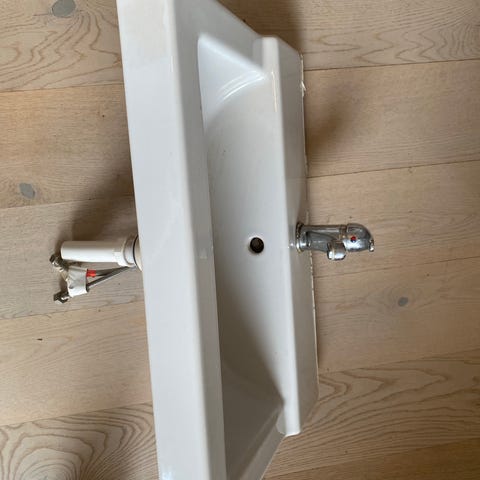 Innbygd blandebatteri med utgang for takdusj og hånd dusj. Har vært i bruk i 12 år. Er en skaded plastring, den er limt, se bilde.