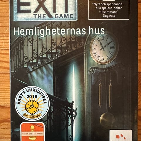 Queen Games Escape brettspill. Spill som innebærer eventyr og samarbeid, med fokus på flukt og utforskning. Inkluderer terninger og brett med ulike rom og utfordringer.