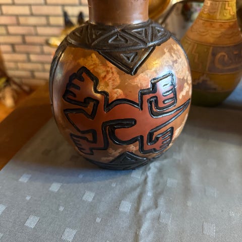 Vasen har tydelig studio-keramikk-preg og er et blikkfang i rommet.