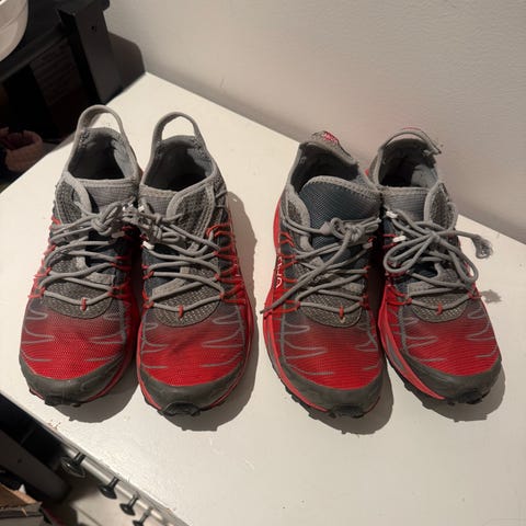 La Sportiva Jackal terrengløpesko i str.38. Har ett par flekker, men er så god som ny da den bare er brukt maks 5 ganger. Selges fordi den er for liten i størrelsen.