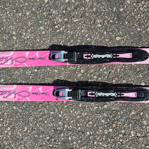 Førstegangsski hvor man kan bruke vanlige vintersko i. Kjempefine til de første små skiturene