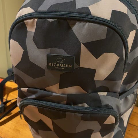 Beckmann gymbag. Blå/lilla med glitterdetaj.