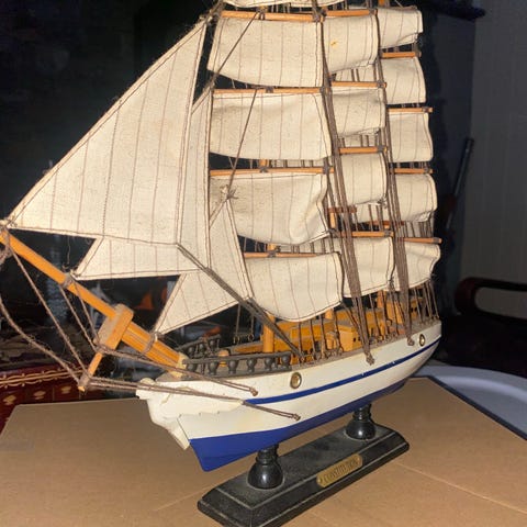Flott håndlaget modellskip med svært mange detaljer