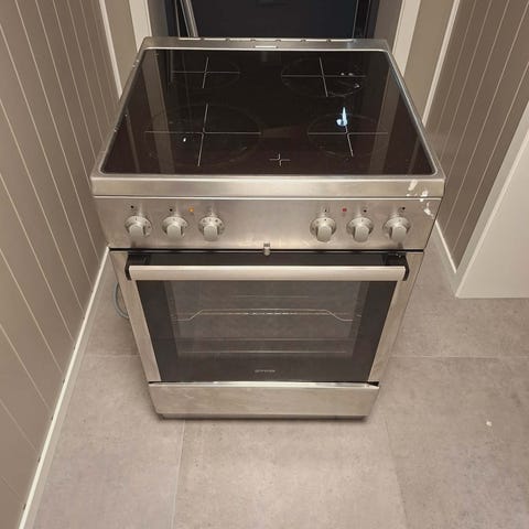 keramisk komfyr med keramisk kokeplate og ovn. Komfyren har flere betjeningsknapper for justering av varme og funksjoner. Den har en svart og hvit fargekombinasjon og er egnet for matlaging i hjemmet.... 3 plater ... fungerer bra, den ene delen fungerer og stopper, og ovnen fungerer bra., men eller alle andre plater og steke ovn fungerer bra..