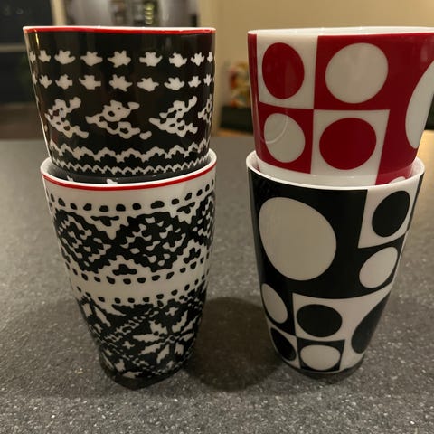 5 kopper den bakerste har et annet merke. 50kr for kopp og asjett.