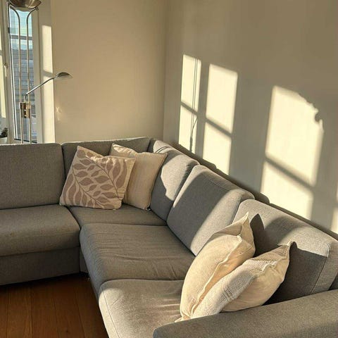 Pent brukt eldre sofa, god å både sitte og ligge i. Den er stor, så lurt å måle opp før du tar kontakt så du er sikker på den passer. Sofa er nå demontert i 3 deler. Må hentast på valderøya. Sofa er 222x272. Rygghøyde 86 cm.