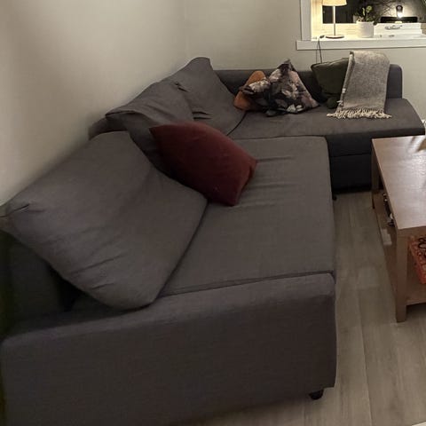 Søderhamn 4-seter med sjeselong fra Ikea. Veldig lite brukt, hel og pen. Kan bygges om og bytte trekk.