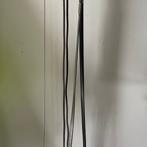 Brystreim i svart lær. Tynt og kort. Ikke vært brukt i min eie. Utstyrt med justerbare spenner for tilpasning. Egnet til bruk med hester.
