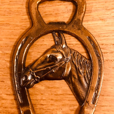 Velbrukt opptrekker med samisk motiv på skaftet. Motivet er tegnet på reinhorn eller reinbein med sort farge, og siden lakkert. Norgesreklame av eldre årgang. Kan godt ha vært produsert i Sápmi for turister.