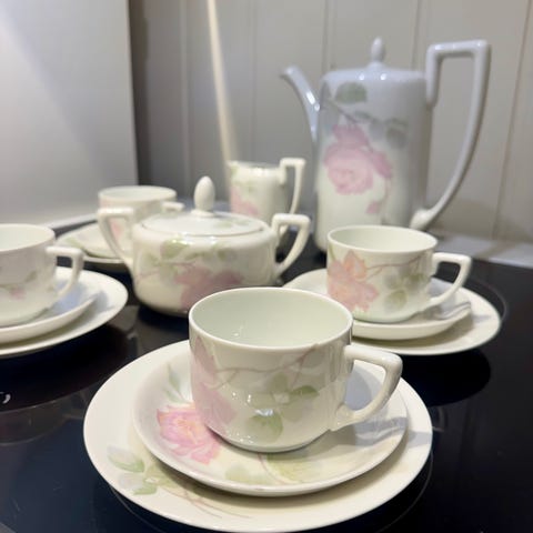 Rosenthal servise laget i porselen. Inkluderer forskjellige typer tallerkener, skåler og serveringsfat. Designet for bruk ved måltider og servering.