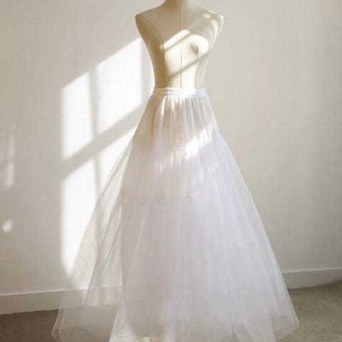 Sort tyllskjørt med en off hvit farge på underskjørt som er noe synlig under tyllen . Skjørtet er langt .