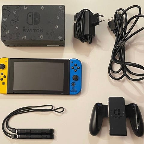 Nintendo Switch – komplett pakke med dock, Joy‑Cons, ladekabel og tilbehør