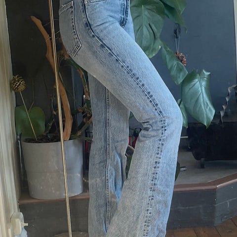 Zara blå denim jeans for kvinner i størrelse 32 med midjevidde W22. Laget av denim materiale, designet for hverdagsbruk.