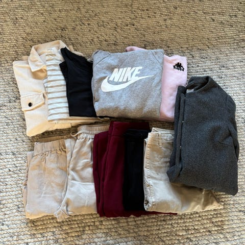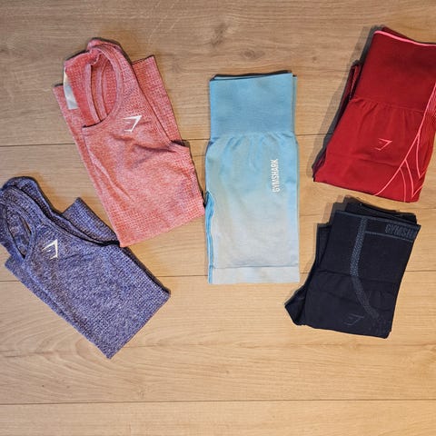klær for dame i størrelse XS. Inneholder ulike plagg i forskjellige farger og materialer, inkludert jeans, gensere, topper og jakker. Passer for daglig bruk og ulike anledninger merke som zara Berskha gina tricot og bik bok. Gymshark