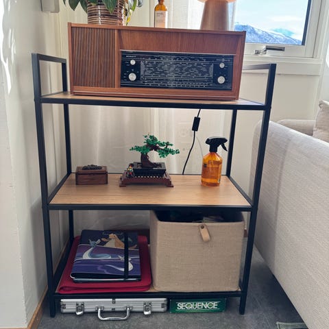 Selges samlet for 900, eller separert. (Hjørnehylle selges for 600, oppbevaringshylle 300).