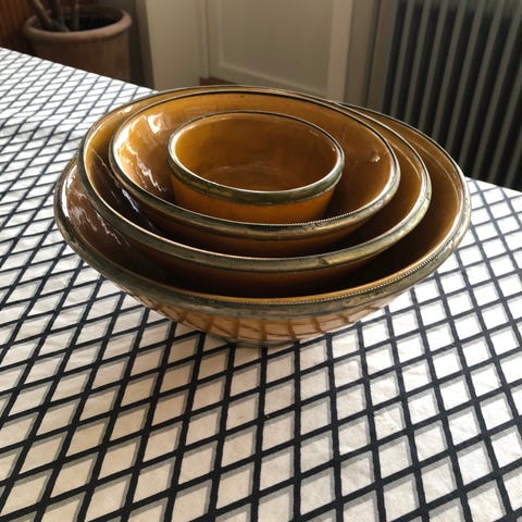 Dette er en Porsgrund Java frokostasjett, et klassisk servise fra 1965 med hvitt og grått mønster og gullkant. Mine tre tallerkner er uten synlige riper eller slitasje.