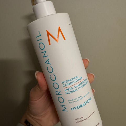 Moroccanoil Hydration hudpleiesett med flere produkter i reisevennlig størrelse. Settet inkluderer fuktighetsgivende produkter med fokus på hydrering, pakket i en brun veske. Følger med shampo, balsam, hårolje og håndkrem.