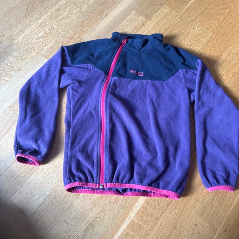 Bergans fleecejakke i størrelse 122 for gutt, laget av polyester. Jakken har blå farge og hel glidelås foran, egnet som mellomlag eller ytterplagg for barn.