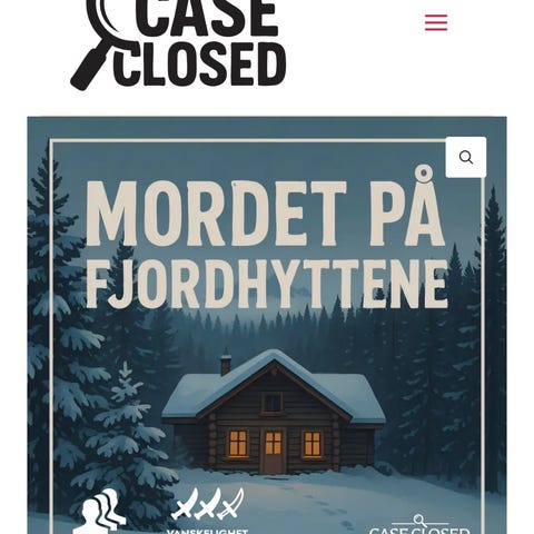 Krimspill til salgs. Med spillet "Mordet på Fjordhyttene" kan du og dine venner/familie teste evner som etterforsker. Dette skapte tvil og diskusjoner hos oss. Veldig gøy!