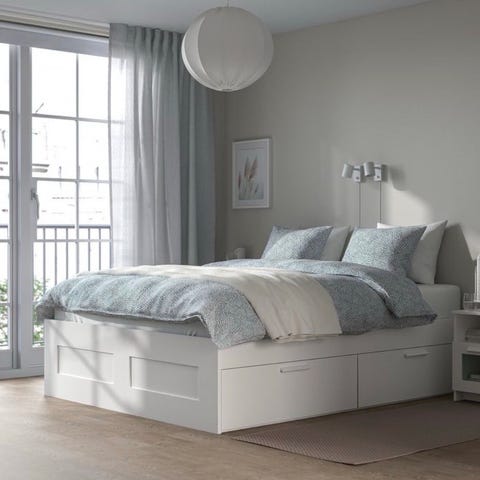 Hyllestad Ikea madrass og en sengeramme med 4 skuffer.