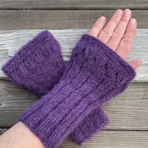 Fine og behagelige, varme pulsvanter, håndstrikket i alpakka med litt mohair/silke.