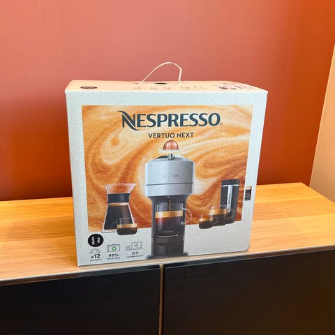 Nespresso / Krups Essenza Mini kapsel kaffemaskin med div kapsler. Maskinen har en vannbeholder i plast og er utformet for bruk med Nespresso-kapsler. Passer til hjemmebruk for å lage espresso og andre kaffedrikker.