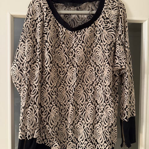Ny stilig bukse og topp fra Carmen Steffens Brasil. Kombinert gull og brune paljetter gir et litt "dyrisk" mønster. Kult sett som passer til selskap, fest og nattelivet. Lengde på bukse 116 cm fra liv til ankel. Buksebenene har en splitt som går 50 cm opp fra ankel. Håndlaget, og solgt i kjent motebutikk i Brasil. Ny og ubrukt med lapp.