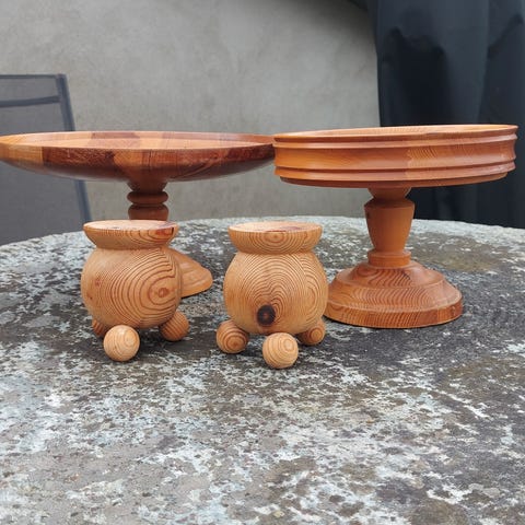 Ei flott trerot utarbeidet med 4 stk te-lysholdere og som og har ei slags skålutforming ved siden.