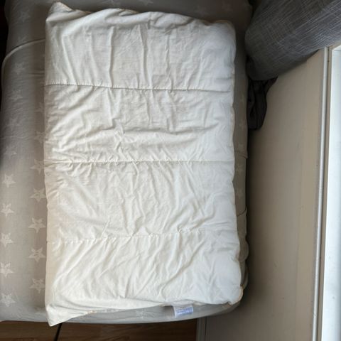 Selger en babydyne 80x100 cm med 2 dynetrekk (og putetrekk). Kun brukt noen få ganger av ett barn.