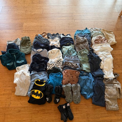 Selger en pent brukt ullpakke i størrelse 68. 2 bodyer har et lite hull, se de siste bildene.