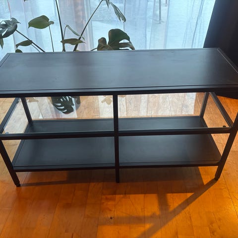 Tv benk fra vida xl med led lys. Lite hakk i toppen, men følger med klistremerker man kan bruke for å skjule. Kjøpt ny aug/sept, og vært i bruk frem til nå ☺️