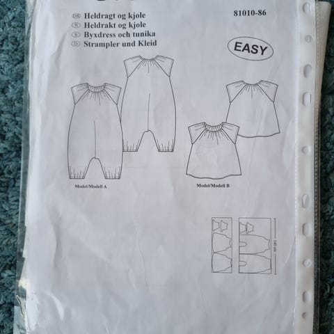 Symønster til babyklær som inkluderer kjole og heldrakt. Str 92. Fra stoff og stil.